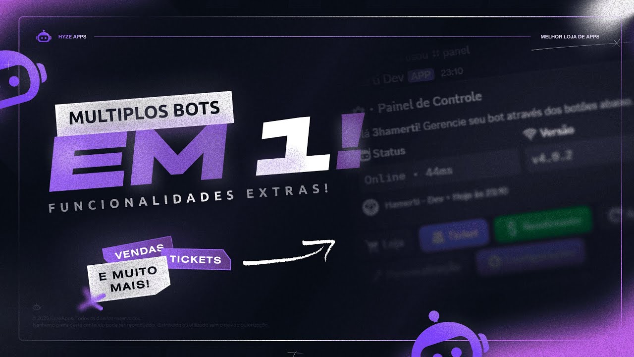 Automatize seu servidor com soluções de tickets, vendas e muito mais. Tudo hospedado, seguro e pronto para usar em minutos.